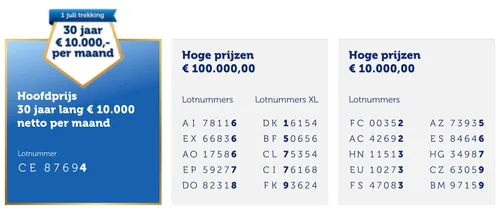 Staatsloterij zal de trekking van maandag 1 juli niet snel vergeten.