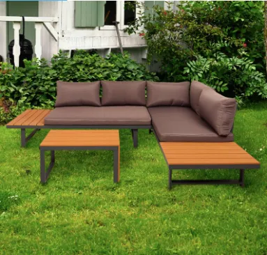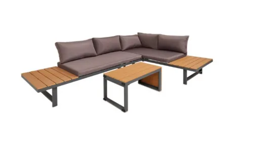 De Aluminium tuinset in antraciet, met houtlook details, biedt je de vrijheid om je buitenruimte naar wens in te richten. Met drie verschillende opstellingen kun je elke dag een nieuwe look creëren.
