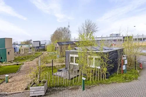 De locatie van de tiny house is gunstig. Het ligt op een klein parkje met een skatebaan en atletiekbaan. Het station is ook op loopafstand.