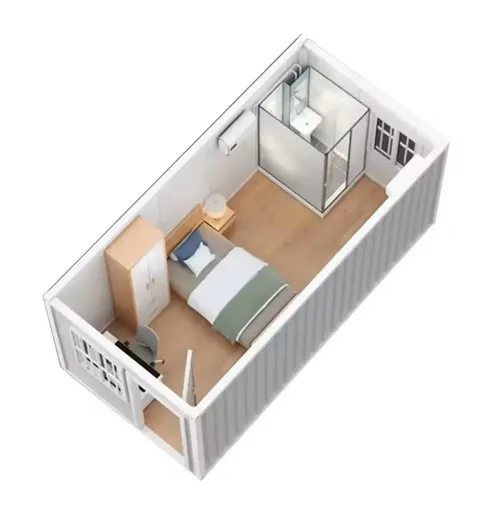 Deze miniwoning is verkrijgbaar in twee formaten: een gezellige 6-meter versie met twee slaapkamers of een ruimere 12-meter variant met drie tot vier slaapkamers.