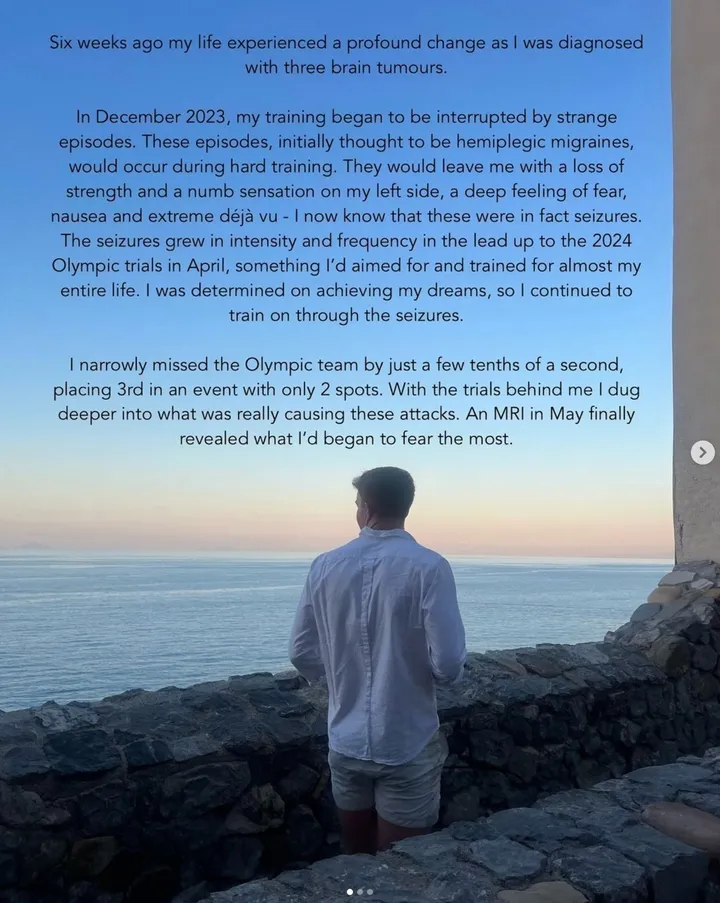 "Zes weken geleden veranderde mijn leven drastisch toen ik werd gediagnosticeerd met drie hersentumoren," schreef Goodburn op Instagram.