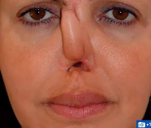 De ex-vrouw van voormalig Arsenal-speler Andrey Arshavin heeft de resultaten onthuld van een reeks operaties aan haar neus nadat een vleesetende ziekte door mislukte plastische chirurgie haar gezicht had vervormd.