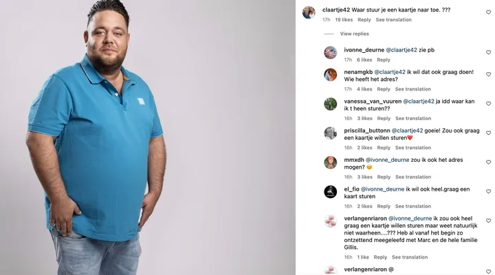 De Instagram-post krijgt enorm veel reacties en likes. Zo schrijven talloze mensen dat ze graag ook een kaartje willen sturen naar Mark.