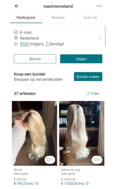 De realityster heeft niet de schaar in haar eigen blonde lokken gezet, maar verkoopt gebruikte extensions en pruiken. En die zijn niet voor de poes: voor meer dan duizend euro staan deze luxegoederen online op Vinted.