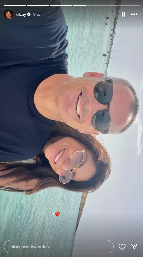 "Ik hoorde dat uit eerste hand van iemand die er heel dichtbij zat,” vertrouwt Santegoeds ons toe. Deze bron durfde helaas geen foto te schieten. Gelukkig is dat nu niet meer nodig, want Olcay gooit zelf een romantisch plaatje online: