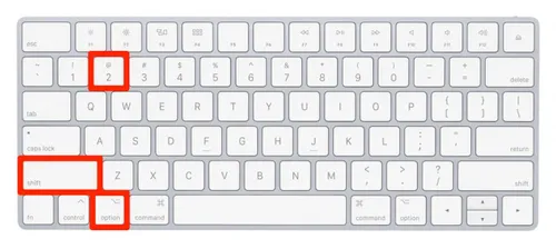 Als deze standaardmethode niet werkt, kun je Option, Shift en de 2-toets samen gebruiken. Dit komt vaak voor bij internationale of afwijkende toetsenbordindelingen.