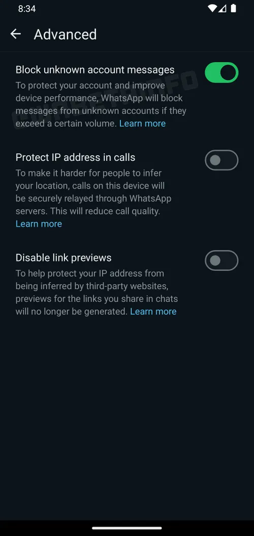 Het doel is om gebruikers te beschermen tegen ongevraagde reclame en potentieel gevaarlijke oplichters. In een recente bètaversie van WhatsApp zijn nieuwe privacy-instellingen geïntroduceerd waarmee gebruikers zelf kunnen bepalen hoeveel berichten ze van onbekende afzenders willen ontvangen.